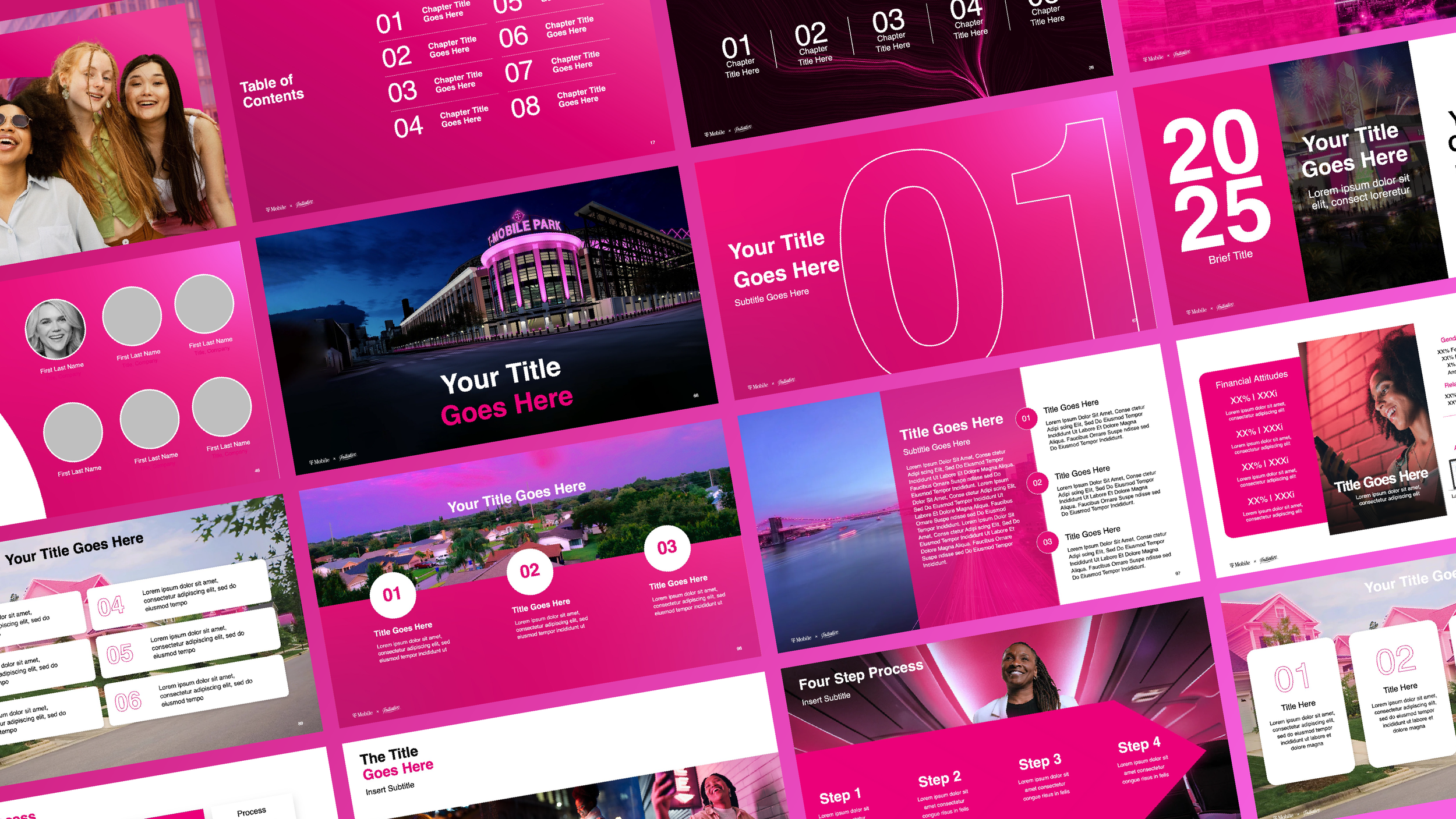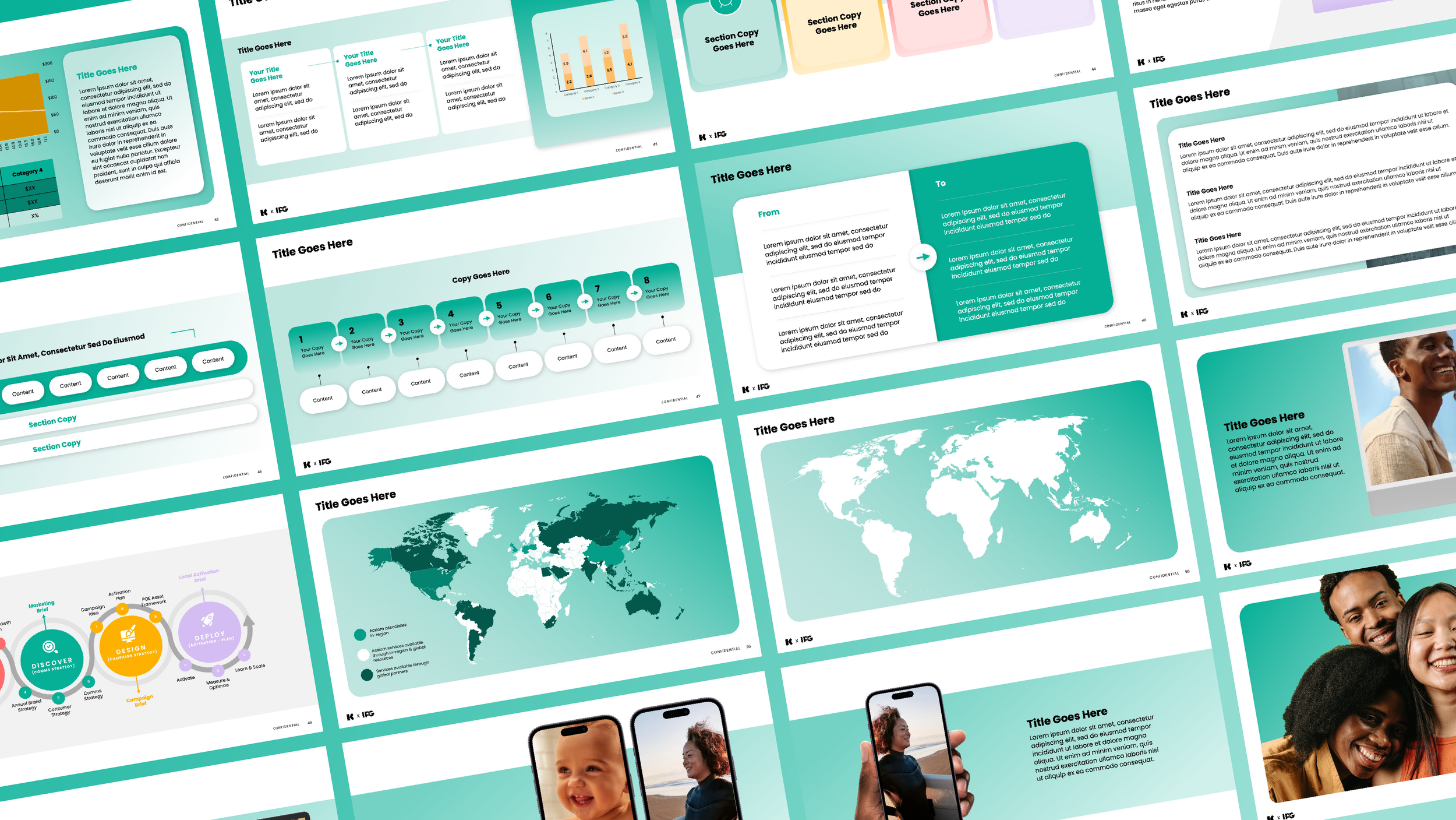 I build presentation frameworks that make that possible. By developing comprehensive libraries of slide types and clear narrative structures, teams can move quickly while design focuses on making each story sharper and more compelling. The goal is consistency without sameness, and speed without sacrificing craft.