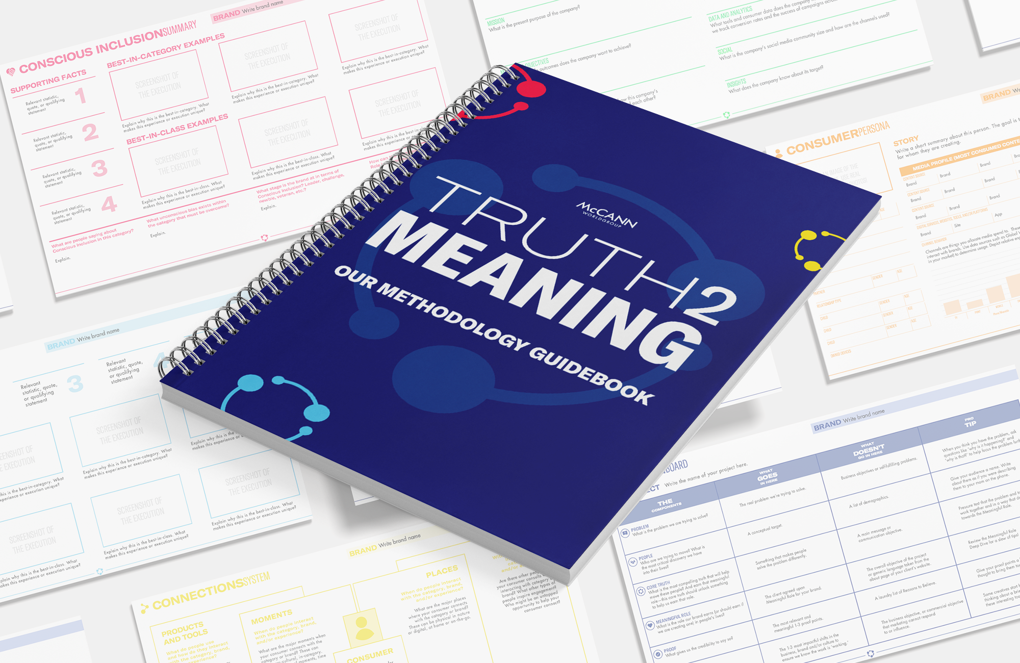 Truth 2 Meaning was McCann Worldgroup’s proprietary, data-driven methodology for turning human insight into actionable marketing strategy. It guided how work was made across the network and delivered on the philosophy of Truth Well Told.